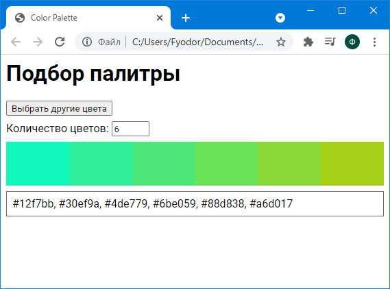 Шкала показывается от двух случайно выбранных цветов, которые генерируются с помощью метода chroma.random(). Для создания шкалы используется метод chroma.scale(colors).